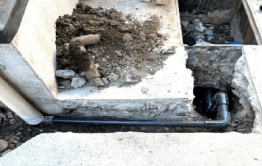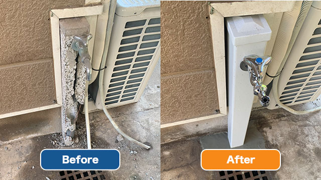 水道メーター付近のコンクリートから水が染み出てきていたため、 コンクリートを解体し、水道管を修繕いたしました。施工箇所